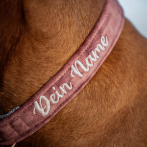 Halsband aus recyceltem Gurtband, das aus alten Fischernetzen, Plastikflaschen und -abfällen gewonnen wurde und nach seinem Leben auch wieder recycelt werden kann. 100% Made in Deutschland. Mit Beschlägen in Rosegold oder Silber.
