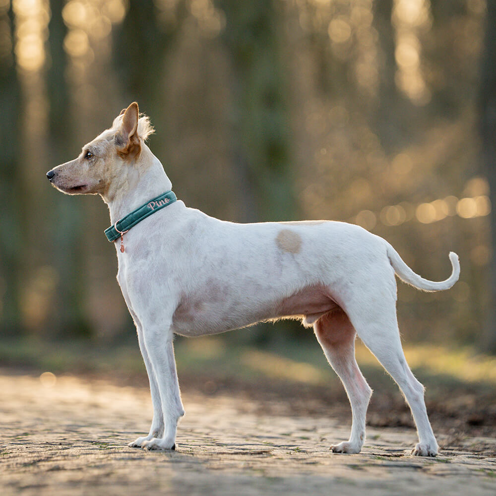 Halsband aus recyceltem Gurtband, das aus alten Fischernetzen, Plastikflaschen und -abfällen gewonnen wurde und nach seinem Leben auch wieder recycelt werden kann. 100% Made in Deutschland. Mit Beschlägen in Rosegold.